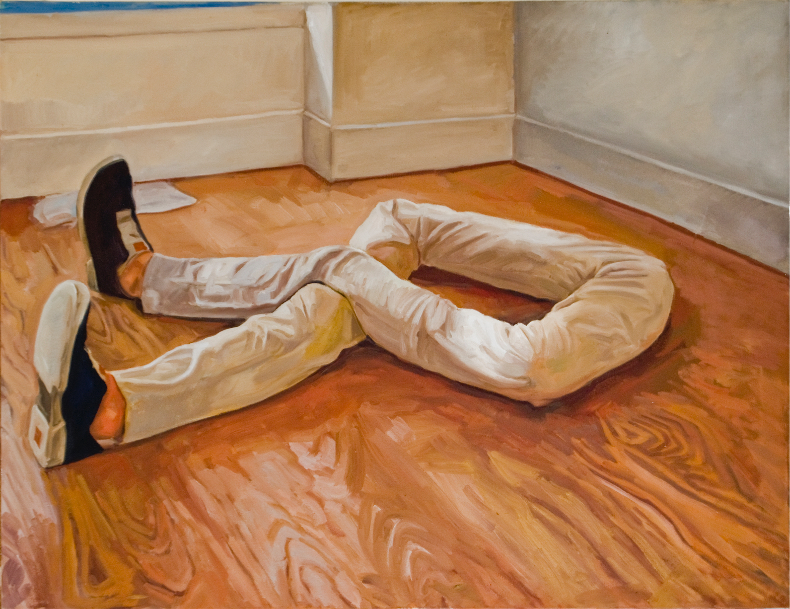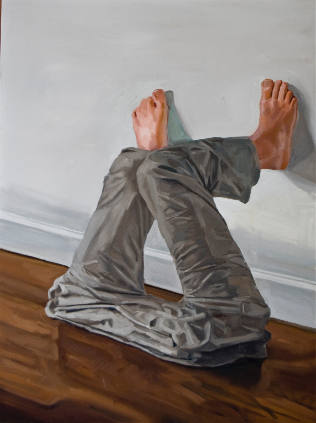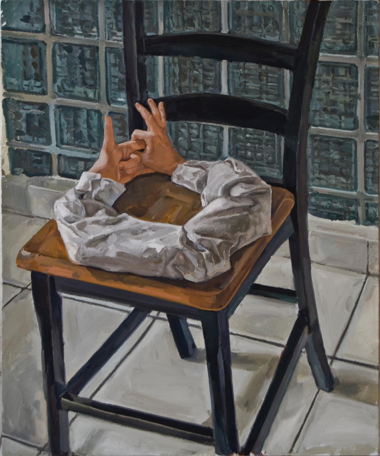 These paintings were created after Ringling College when I settled back into San Juan Puerto Rico after European Museum travel tour. The design desicion where motivated by Rene Magritte and Robert Gober. I wanted them to resemble installation sculptures, but stick to oil painting format. At the time I was training Yoga and was influenced by it's sculptural postures as seen from interiors.