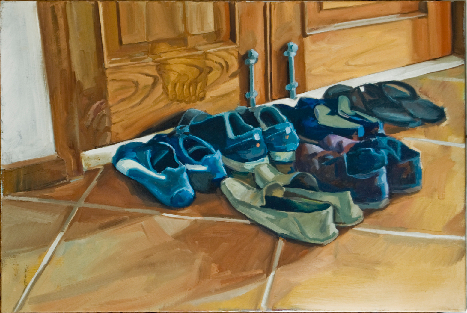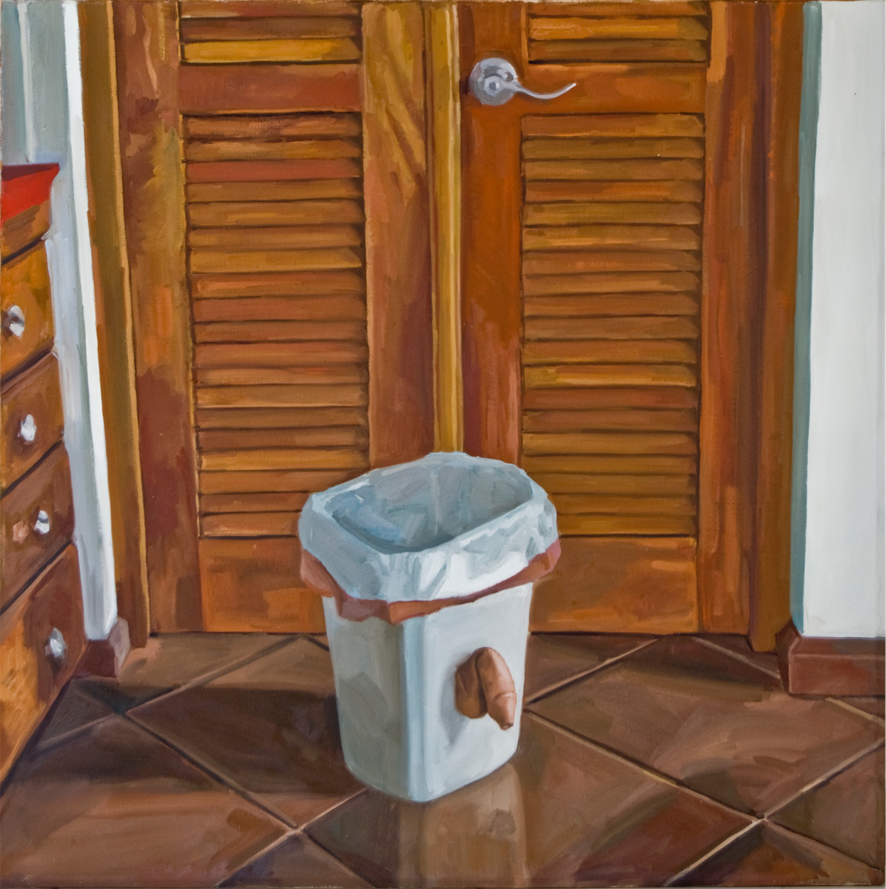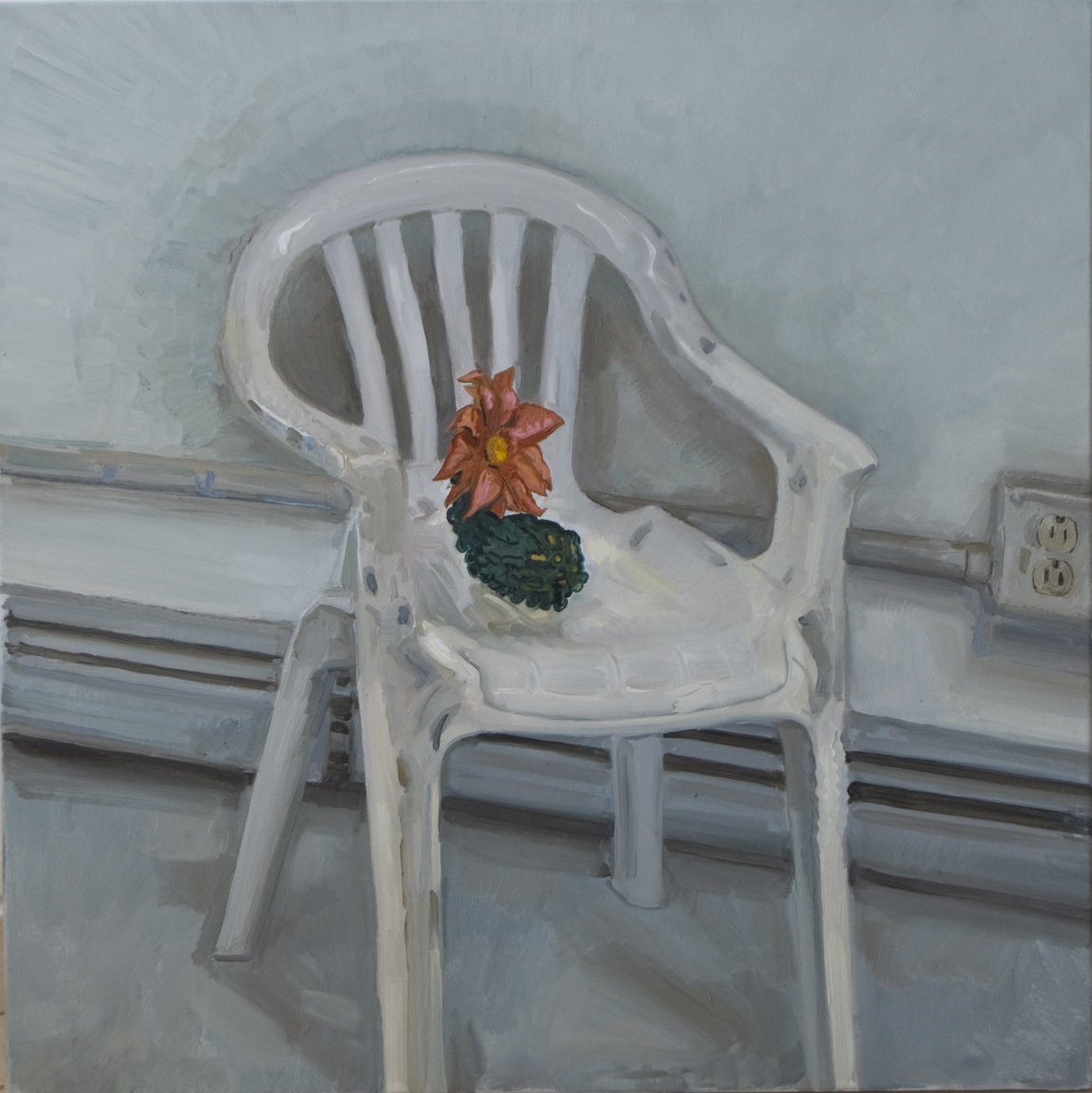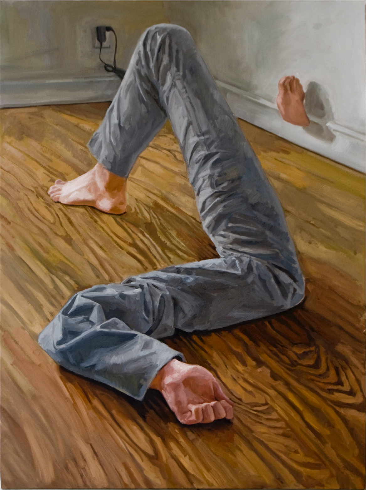 These paintings were created after Ringling College when I settled back into San Juan Puerto Rico after European Museum travel tour. The design desicion where motivated by Rene Magritte and Robert Gober. I wanted them to resemble installation sculptures, but stick to oil painting format. At the time I was training Yoga and was influenced by it's sculptural postures as seen from interiors.