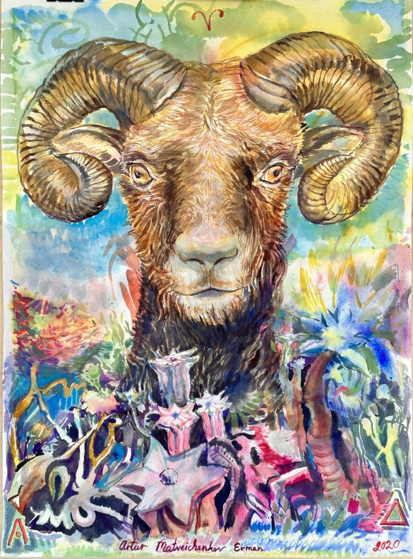 Aries, watercolor on paper, 22" x 30"/55.88cm x 76.2cm