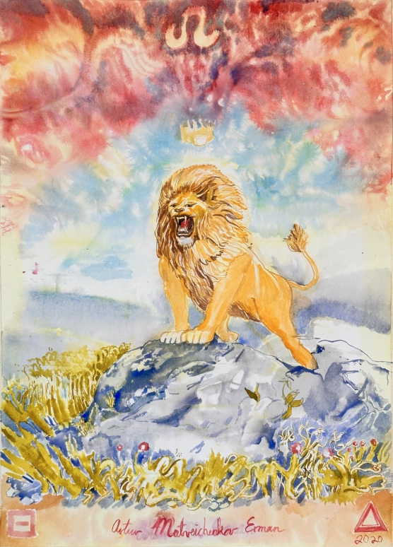 Leo, watercolor on paper, 22" x 30"/55.88cm x 76.2cm