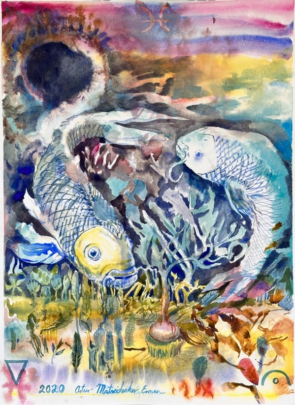 Pisces, watercolor on paper, 22" x 30"/55.88cm x 76.2cm