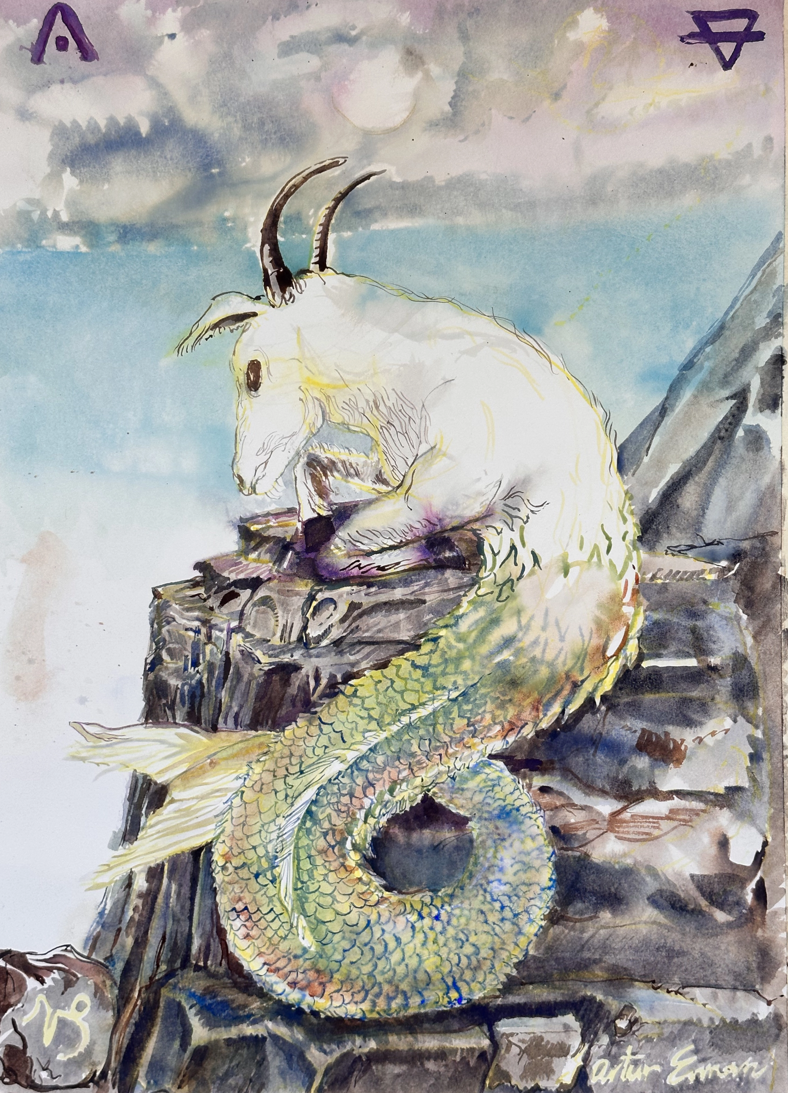 Capricorn, watercolor on paper, 22" x 30"/55.88cm x 76.2cm