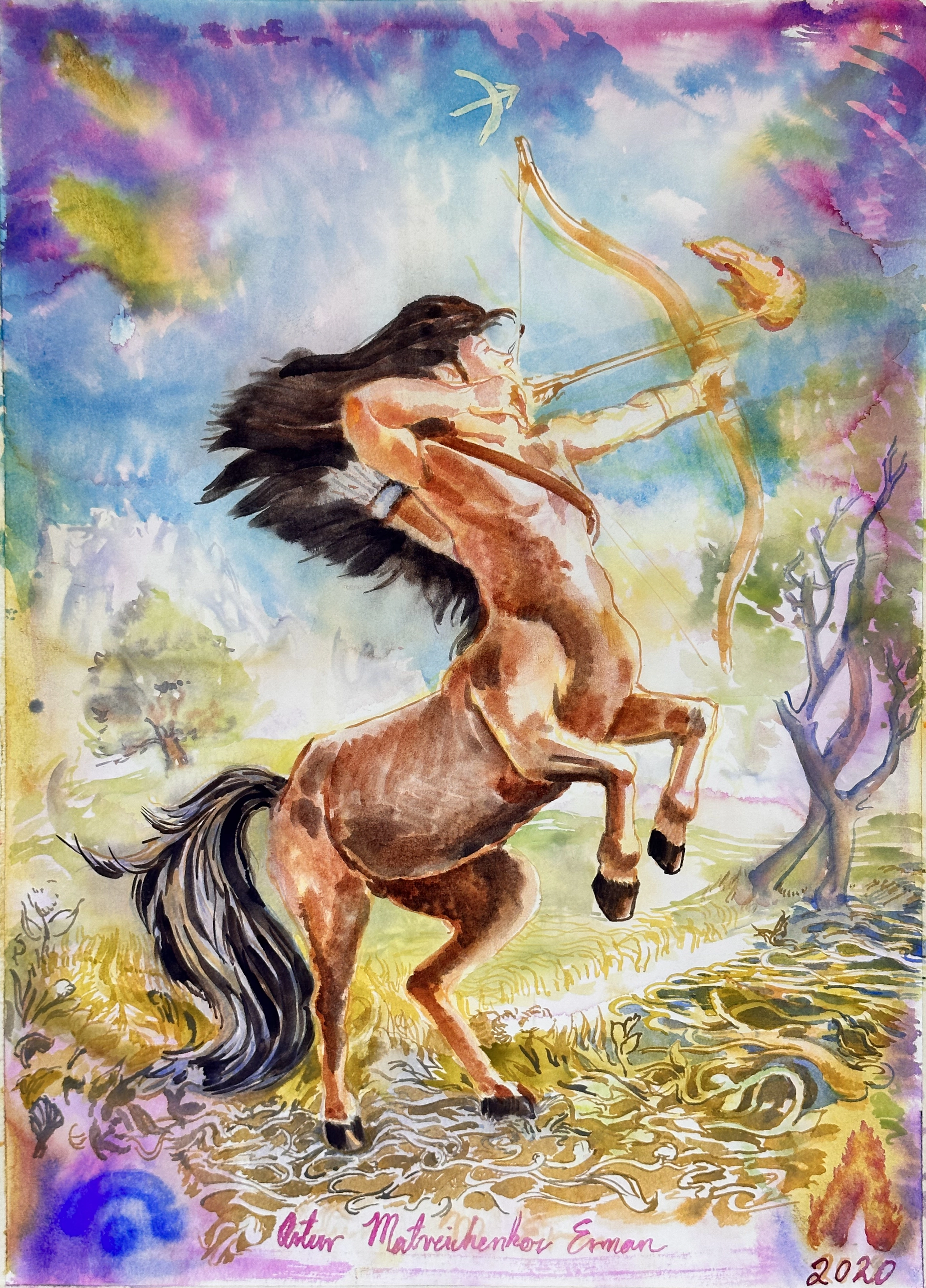 Sagittarius, watercolor on paper, 22" x 30"/55.88cm x 76.2cm